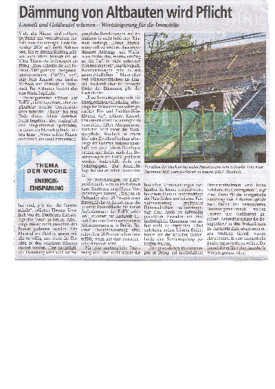 Dämmpflicht von Altbauten laut EnEv (Energieeinsparungsverordnung)